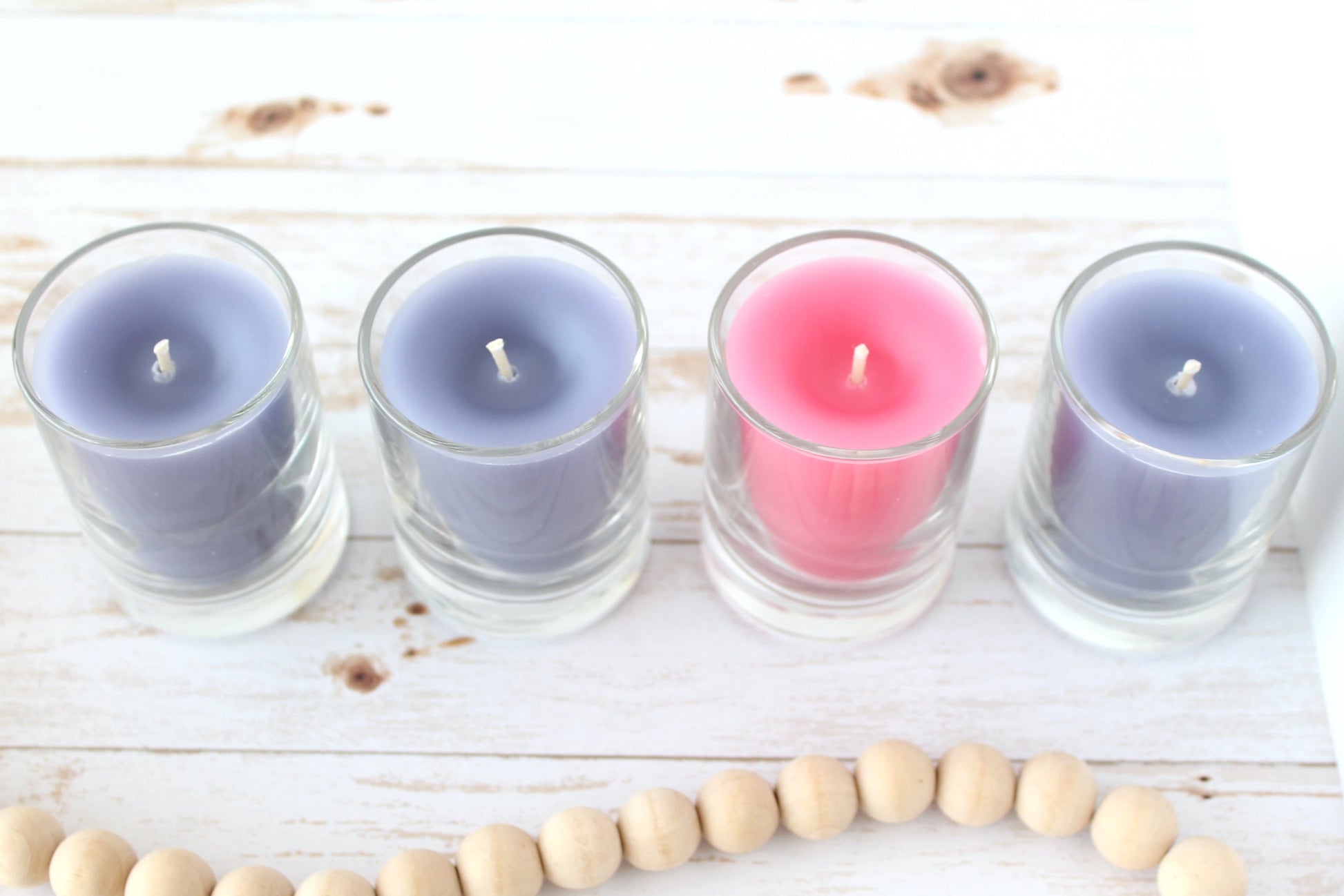 These Advent beeswax votives are approximately 2” tall and 1 1/2” wide at the base. The glass votive jar measures 2 1/2” tall with a nice thick bottom. Burn time is around 12-15 hours each. These are the perfect size for creating your own Advent wreath using garland, or keep it simple and modern with a minimalistic style as pictured.