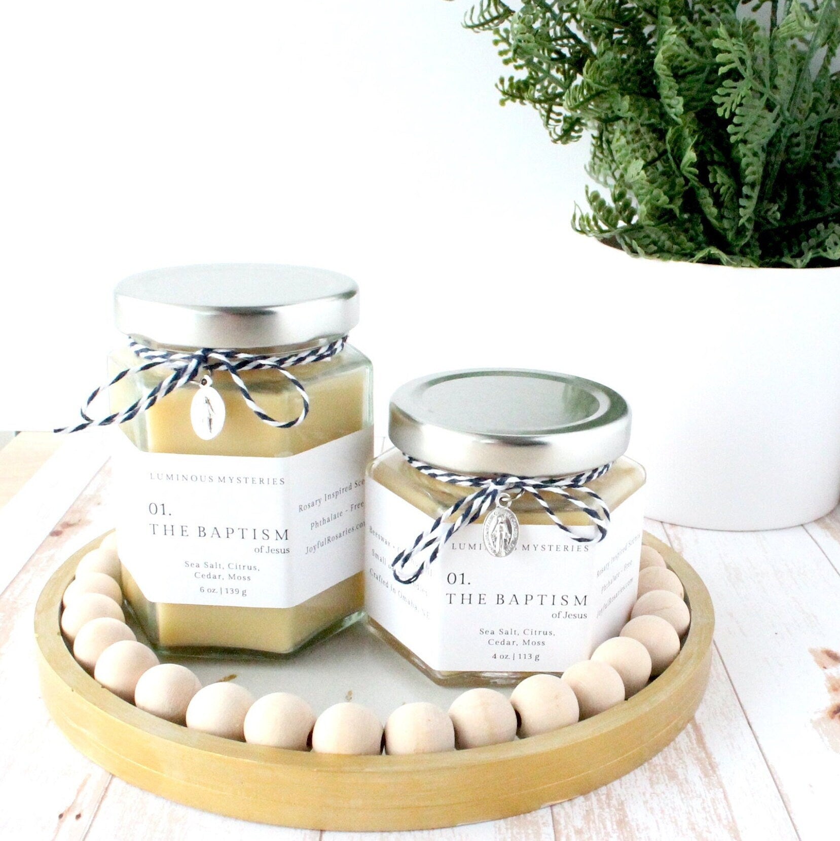 Let us meditate upon Jesus' baptism in the Jordan, while filling our prayer space with the scents reminiscent of the seas which meet the Jordan River; Sea Salt, Citrus, Moss, and Cedar.
