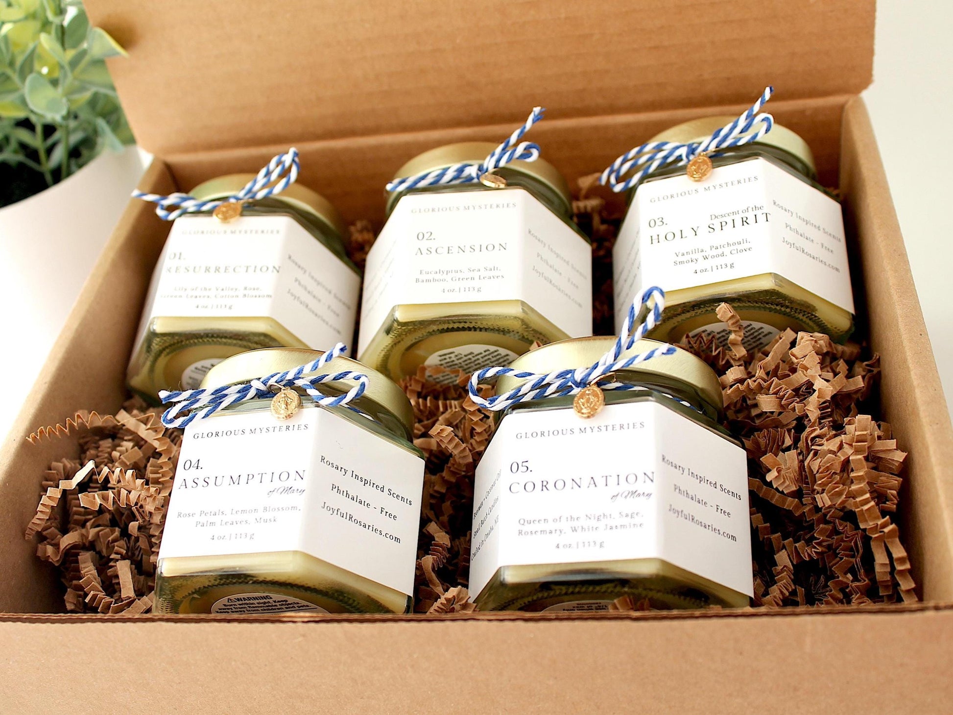 All materials and scents I use are 100% clean, non-toxic, and centered around the Catholic faith.