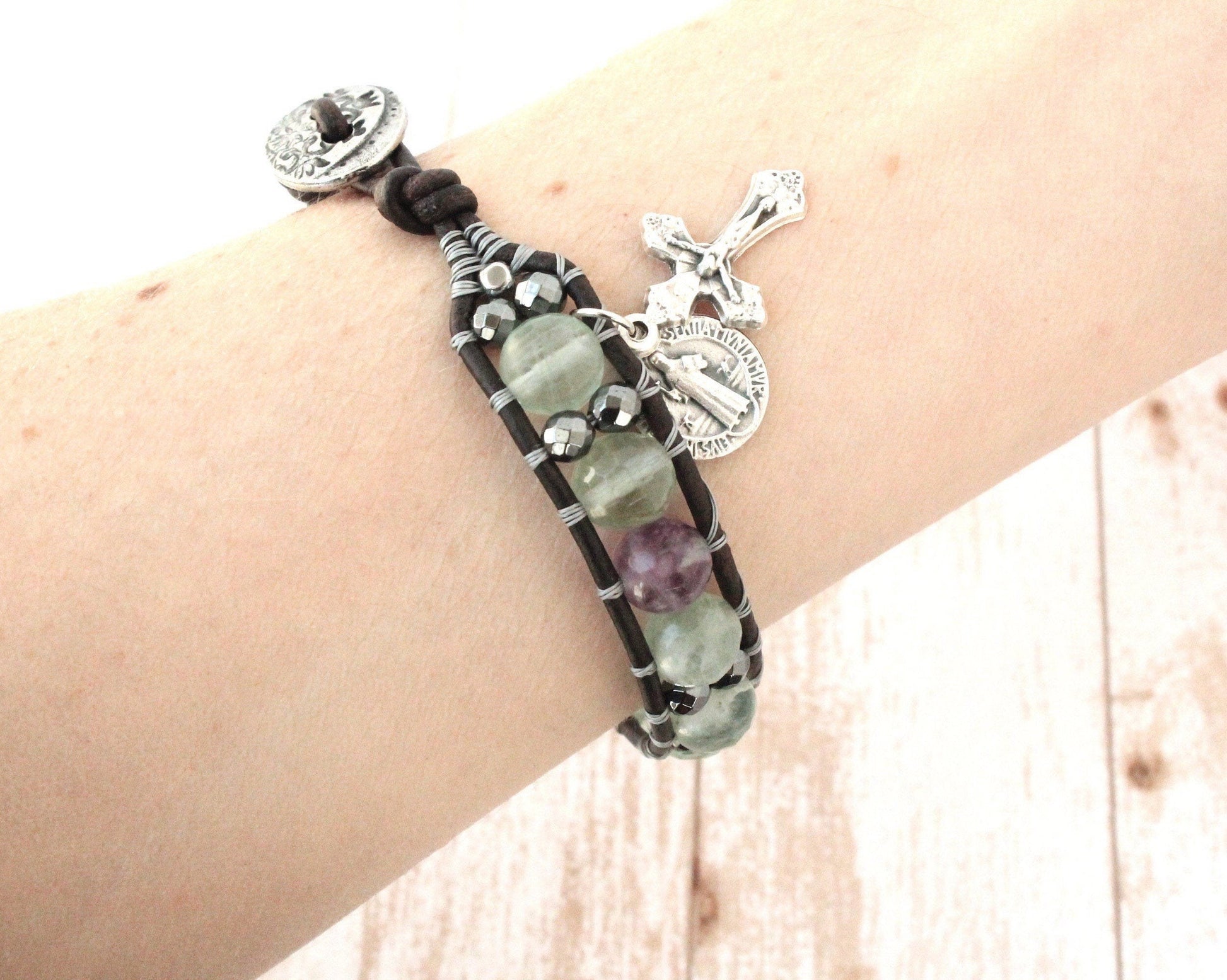 All beads on this bracelet are hand-threaded twice with strong beading thread which I double up to ensure a durable bracelet. The charms are hung on a stainless steel jump ring.
