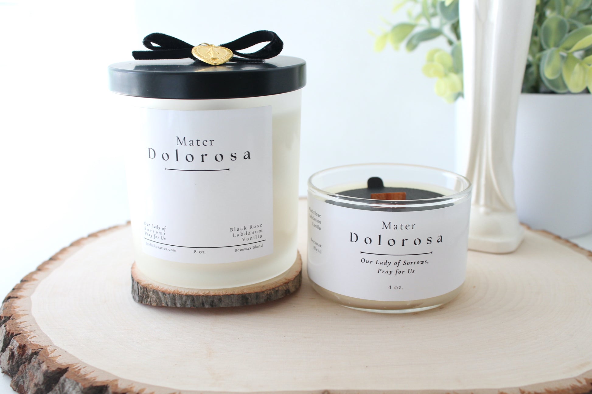Surround yourself with the scents of the Mater Dolorosa candle. Fragrance notes of Black Rose, Labdanum, and Vanilla will fill your sacred living space with deep reflection as you meditate upon the Sorrows of Mary.
