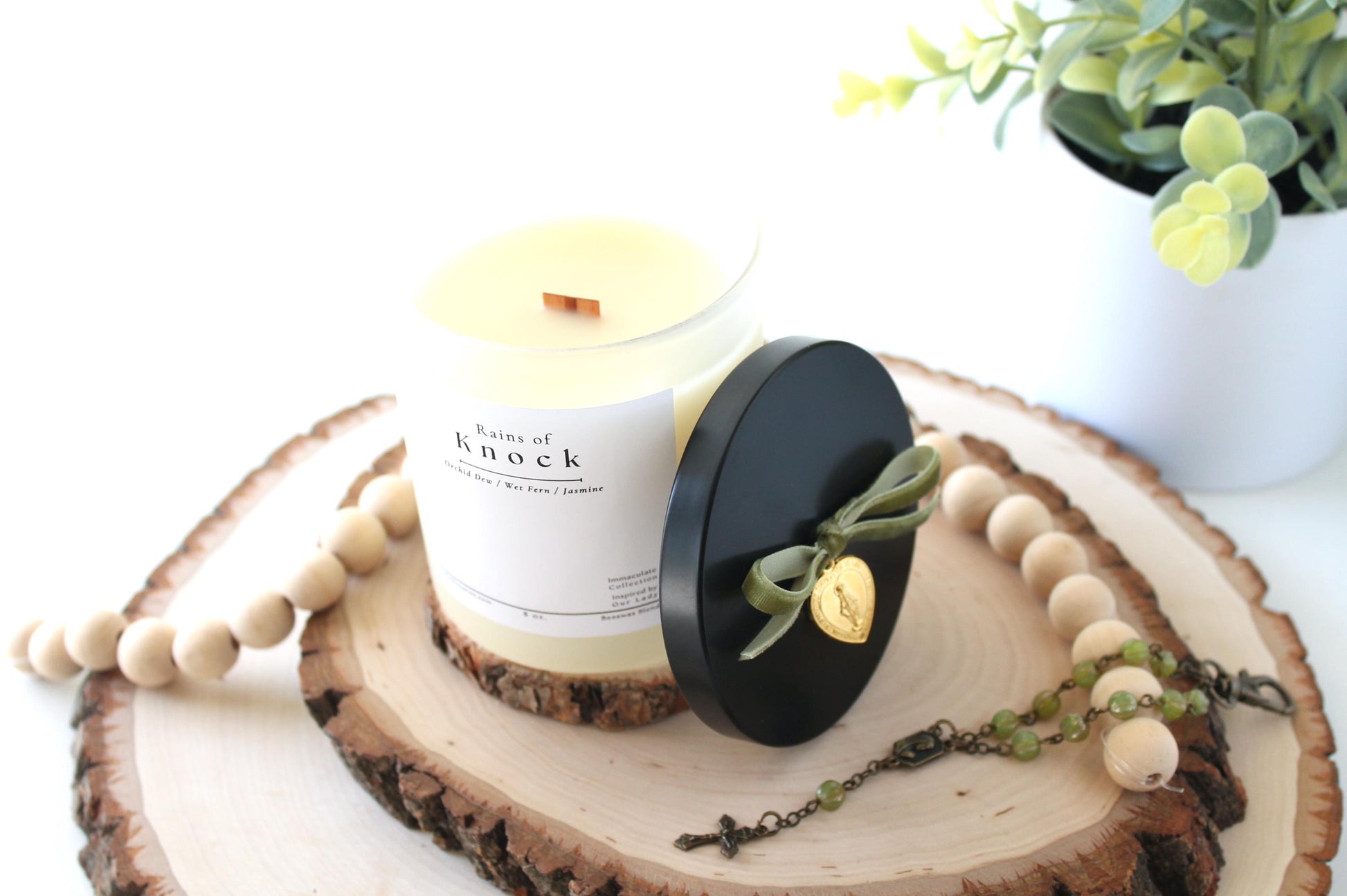 Enjoy the earthy and floral aroma of Orchid Dew, Wet Fern, and Jasmine while filling your sacred living space with the scent of the dewy countryside of Ireland after a rainfall. These scents are intentionally chosen as a reminder of the miraculous events that took place during the apparition of Our Lady of Knock.