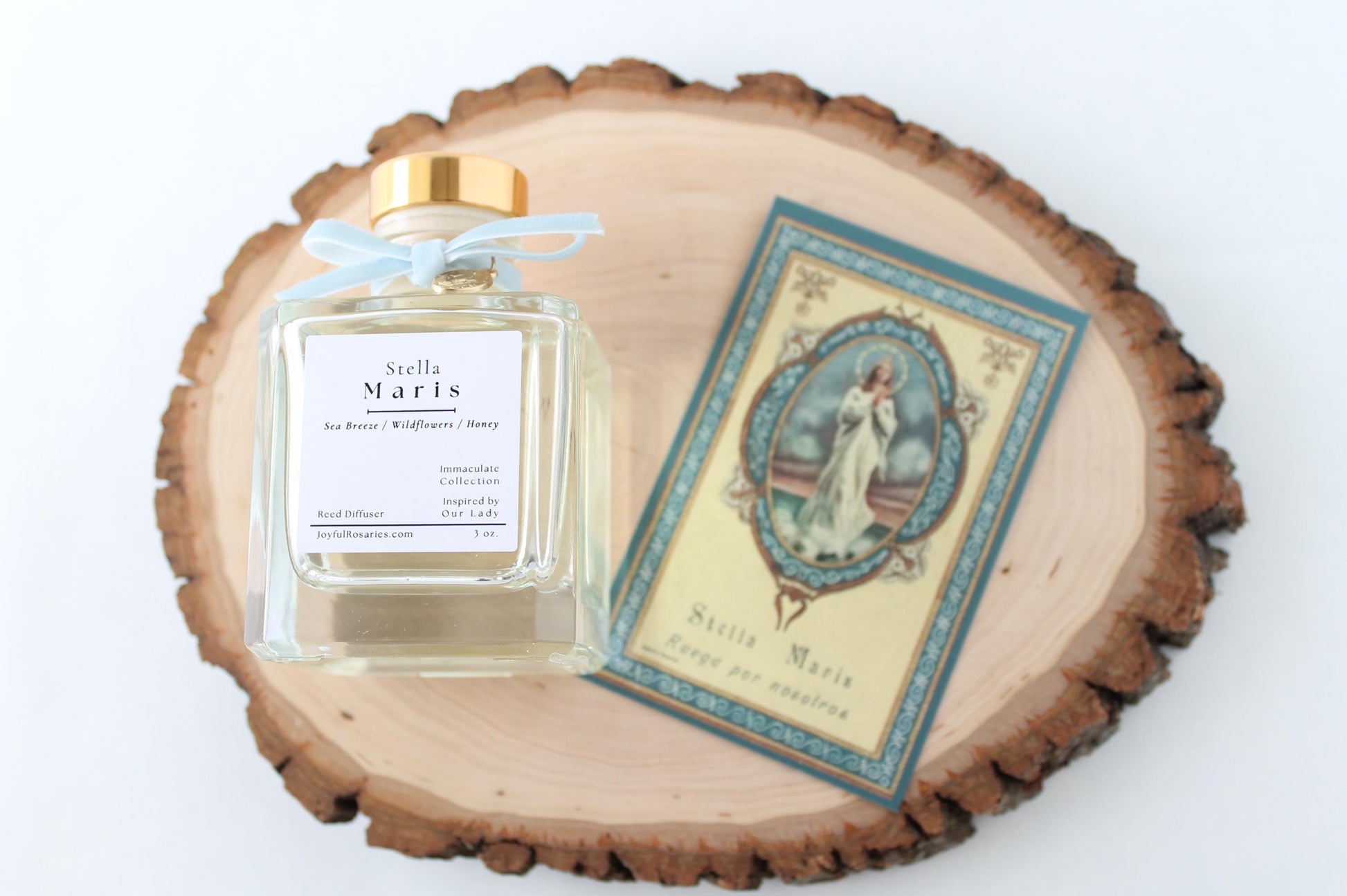 All "Immaculate Collection" reed diffusers will include a corresponding "Stella Maris" holy card; perfect for gift giving!